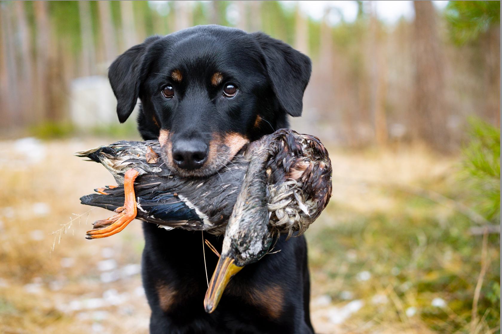 Etterhvert som jeg tok jegerprøven trente jeg han opp i en alder av 10 år til å apportere ender på andejakt, jeg har trent han til å fungere som sporhund på elgjakt, vi gikk fra null interesse for hønsefugler til å få han kjempetent på rype! han fungerte  etterhvert ypperlig til å ha med på støkkjakt.  Han brukte nesa si og vi fant en unik måte å samarbeide på selvom han ikke tok stand. Jeg har skrevet en artikkel i magasinet Jeger om hvordan vi trente og gikk frem.